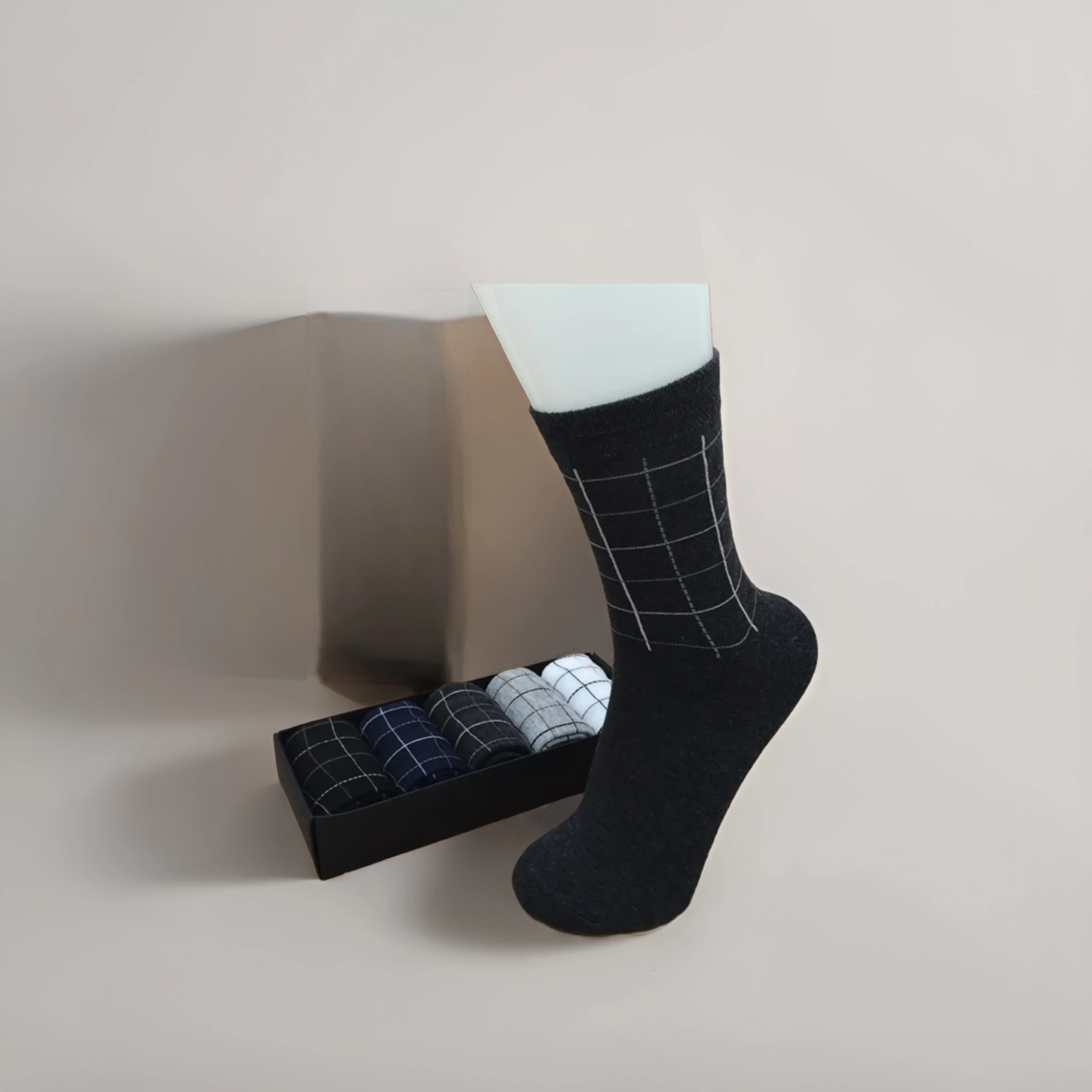 Premium Cotton Blend Grid Crew Socks Gift Set, Classic Checkered Patterns, Snug Fit, Perfect for Everyday Wear