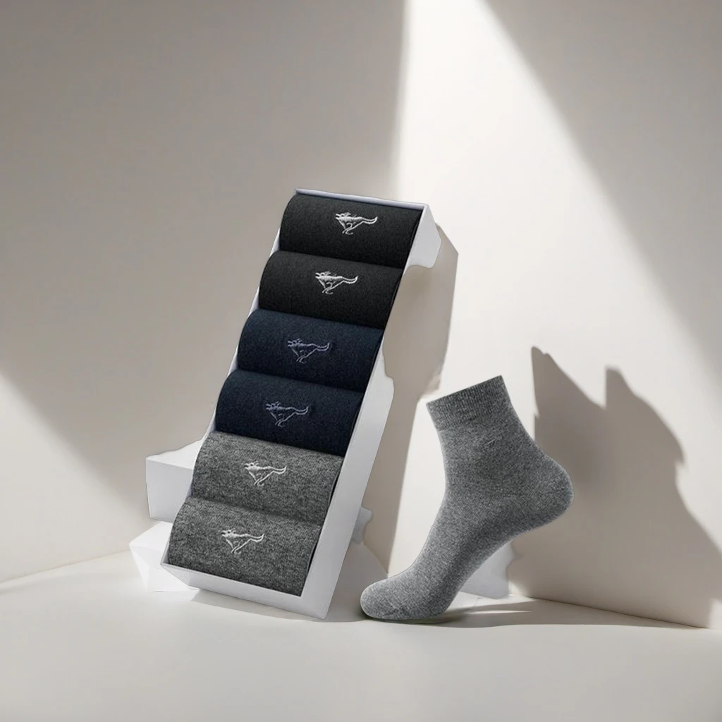 Kangaroo Embroidered Sock Set combines style and comfort with unique kangaroo embroidery in classic black, navy, and gray tones. Made from soft, stretchable fabric, these ankle socks ensure a snug yet breathable fit, perfect for daily wear. Whether you're lounging, heading to work, or gifting loved ones, this set comes elegantly packaged, making it a thoughtful and practical choice for any occasion.